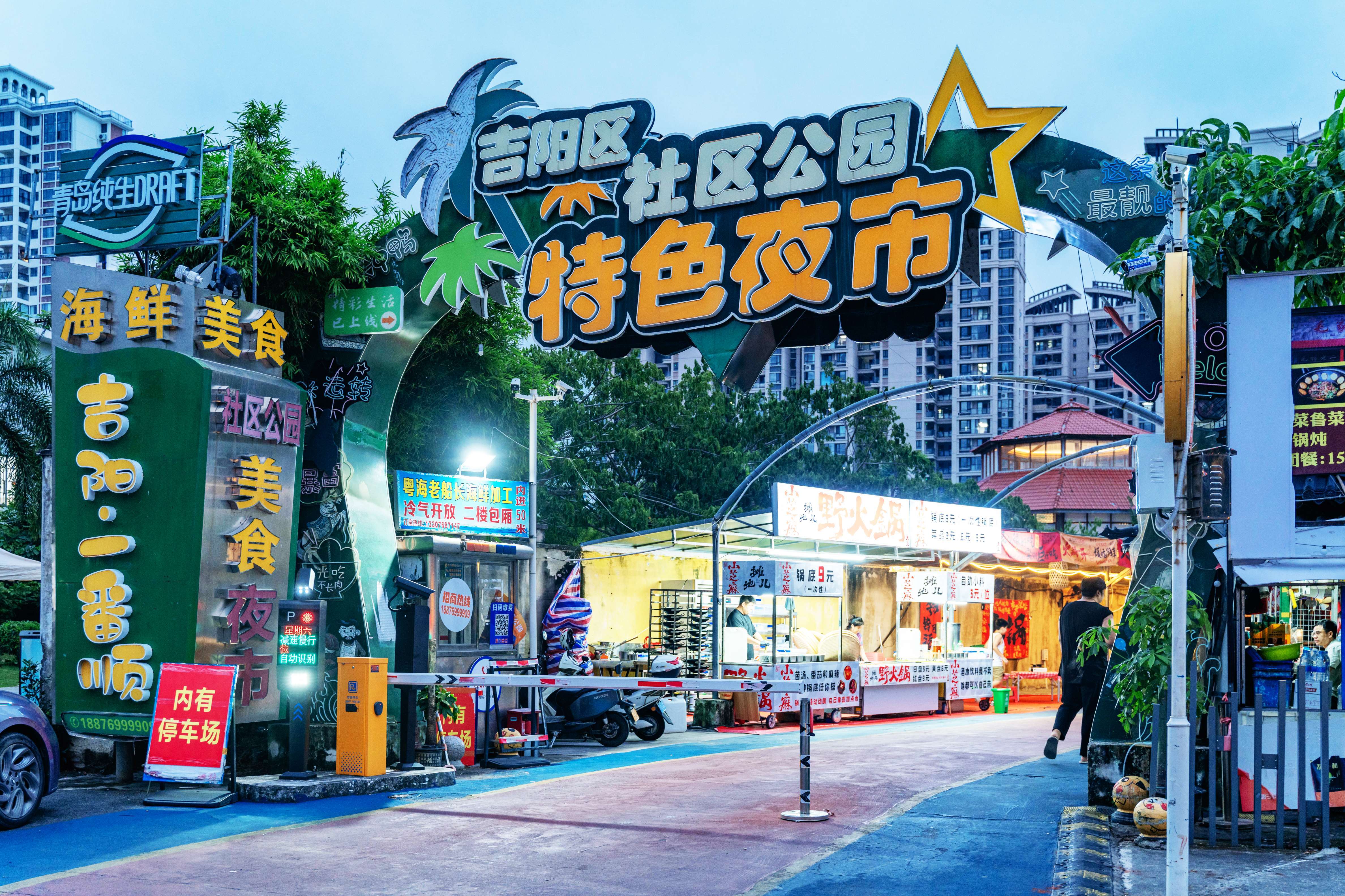 吉阳 荔枝沟路社区公园特色夜市旁