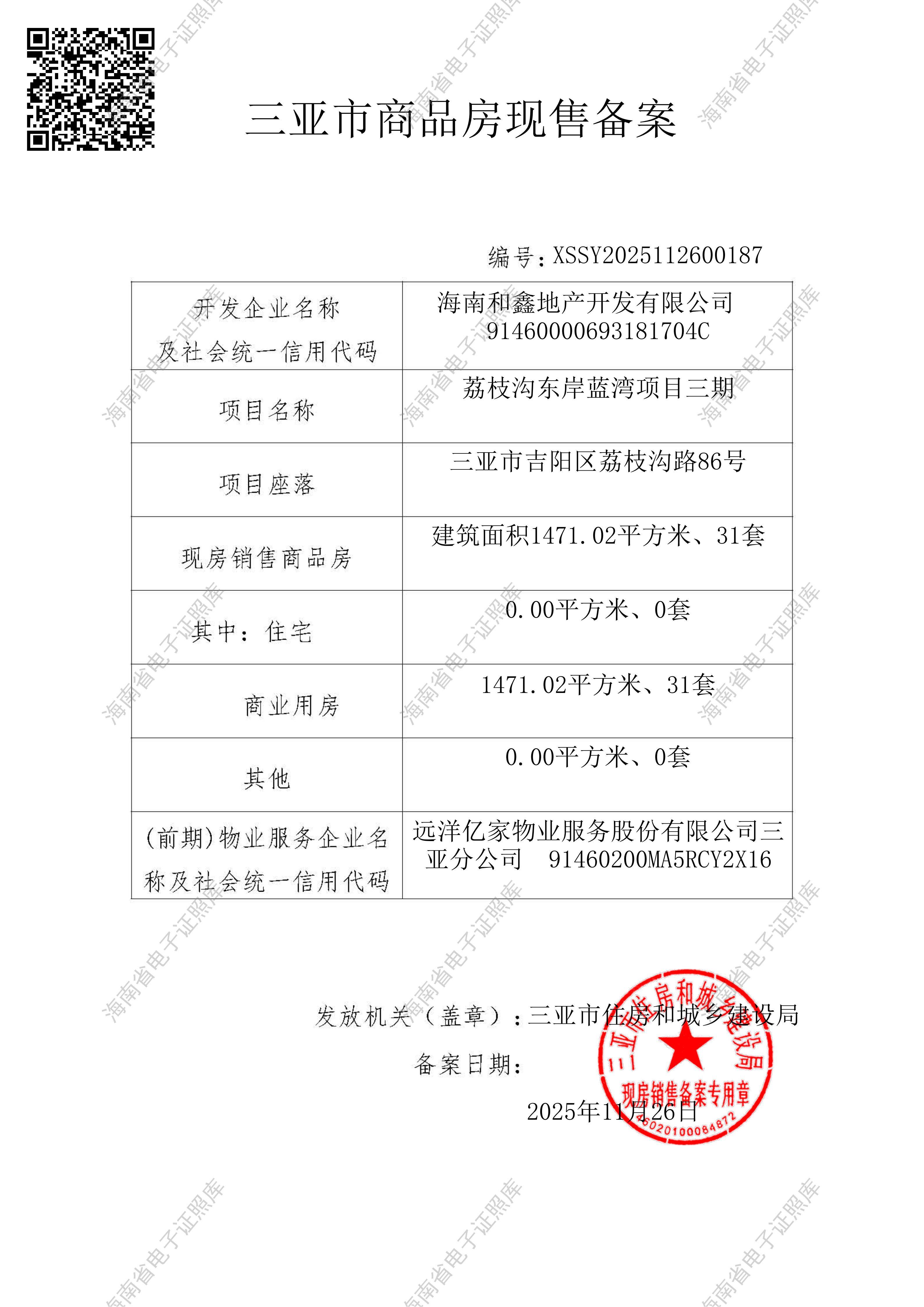 XSSY2025112600187 | 2025-11-26 | 现售备案基本信息
