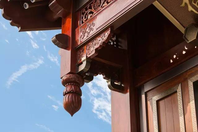 于细节处,窗檐、门楣、梁柱等每一处木雕纹理都奢华内敛。手工雕花,题材均来自于中国传统吉祥纹样祥云、灵兽、花叶、山水等,规划、设计、打坯、雕刻、打磨、上漆…规格不一的刻刀,精心雕琢。
