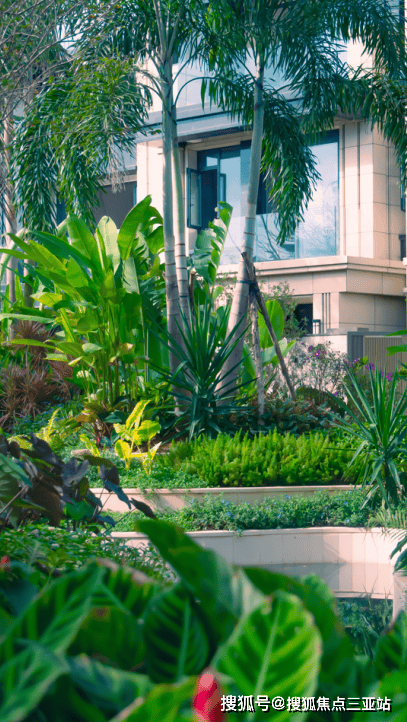 艺术园林由山水比德担纲定制设计,项目景观团队飞行里程超32万公里,从全国筛选苗木约37219棵,约270余种丰富植物,最终为我们呈现出“园→林→港→滩→海”5重洄游式热带度假园林。