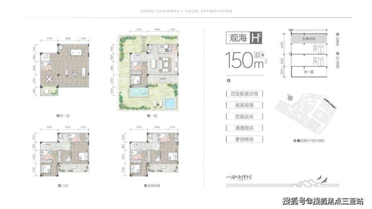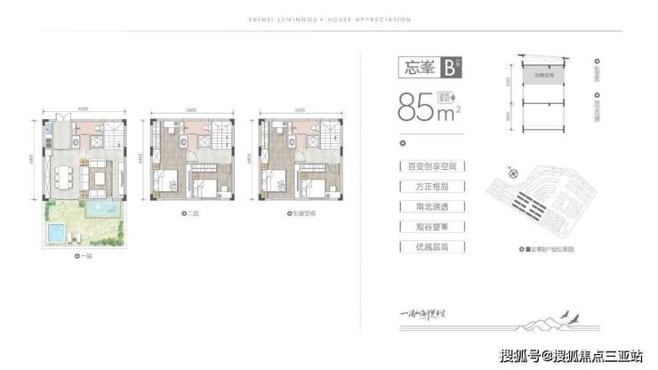 一期首推的是75㎡的牧云系列、75-150㎡的观海系列、100㎡的拾光系列,85㎡的望峯系列和75㎡的听澜系列,每户都享有极佳的景观面和超大的拓展空间,整体性价比很高。总价百万起,轻松入手海南自贸港的绝版山海资产。
