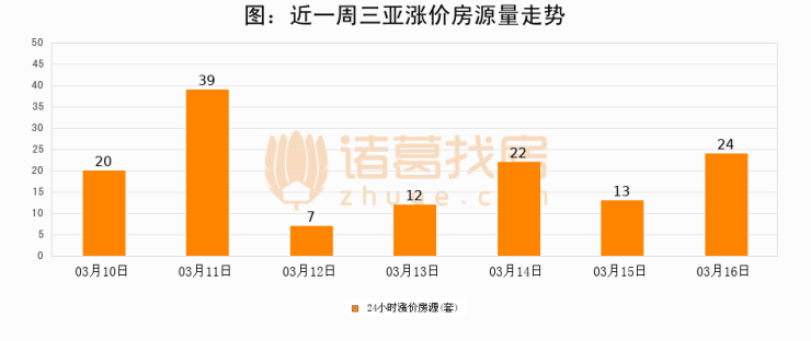 根据诸葛找房数据显示,三亚24小时涨价房源量为24套,较03月15日增加11套,环比上涨84.6%。与此同时,涨价房源占比小幅扩大,业主信心有所提升。