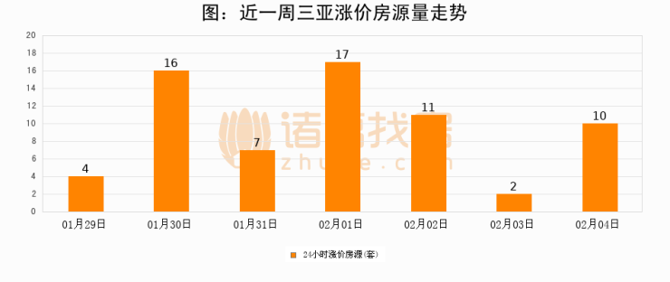 根据诸葛找房数据显示,三亚24小时涨价房源量为10套,较02月03日增加8套,环比上涨400%。与此同时,涨价房源占比小幅扩大,业主信心有所提升。
