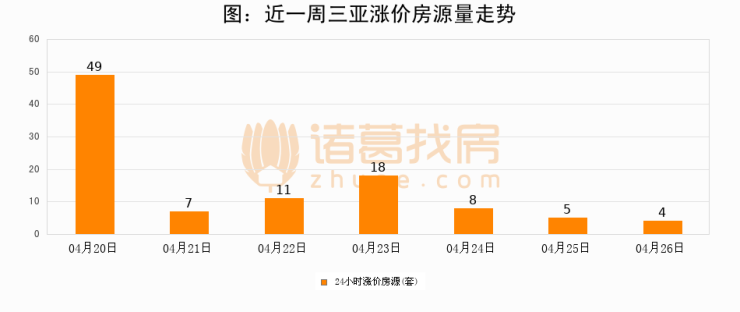 根据诸葛找房数据显示,三亚24小时涨价房源量为4套,较04月25日减少1套,环比下降20%。与此同时,涨价房源占比小幅回落,对于购房者来说是一个入市窗口期,购房者可抓住时机入市。