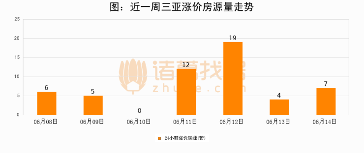 根据诸葛找房数据显示,三亚24小时涨价房源量为7套,较06月13日增加3套,环比上涨75%。与此同时,涨价房源占比小幅扩大,业主信心有所提升。