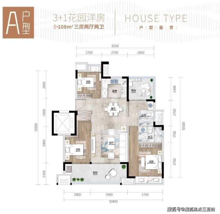 必买价值八【优享户型】:约108㎡3+1纯板房,明厨明卫双阳台,全家均享独立度假空间。