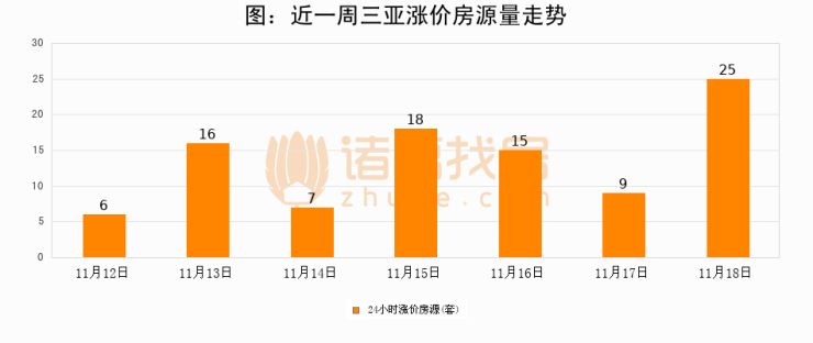 根据诸葛找房数据显示,三亚24小时涨价房源量为25套,较11月17日增加16套,环比上涨177.8%。与此同时,涨价房源占比小幅扩大,业主信心有所提升。