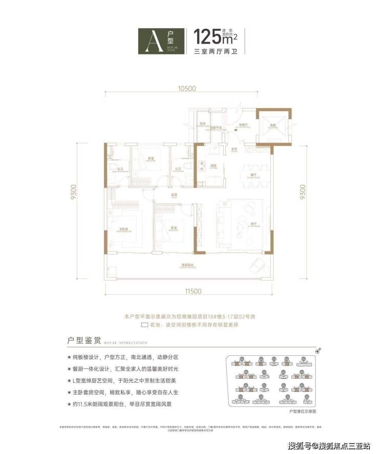 ①建筑面积约125㎡的3房2厅2卫
