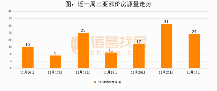根据诸葛找房数据显示,三亚24小时涨价房源量为24套,较11月21日减少7套,环比下降22.6%。与此同时,涨价房源占比小幅回落,对于购房者来说是一个入市窗口期,购房者可抓住时机入市。