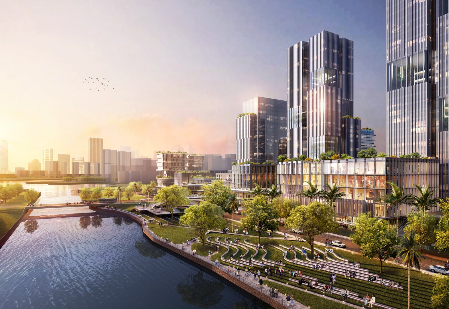 恒力集团以丰富滨水/海岸奢宅地产开发经验,借势自贸港蓬 勃浪潮,落子三亚湾 CBD 核芯区域,以一座约 160 米地标海景 写字楼与三栋瞰海华宅,共筑世界湾区的天际封面。