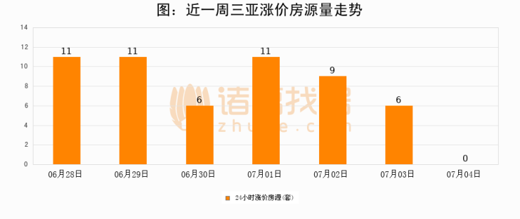 根据诸葛找房数据显示,三亚24小时涨价房源量为0套,较07月03日减少6套,环比下降100%。与此同时,涨价房源占比小幅回落,对于购房者来说是一个入市窗口期,购房者可抓住时机入市。