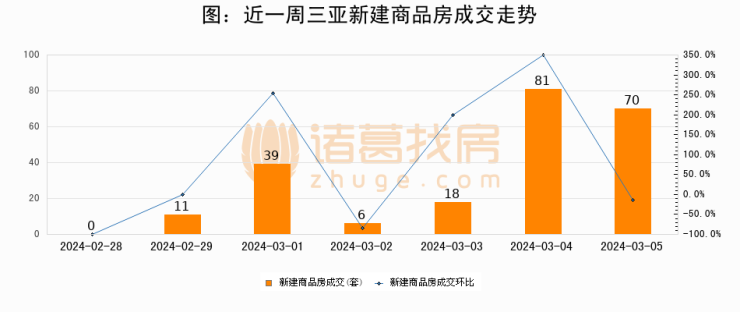 【三亚成交日报】03月05日新房成交70套;涨价房源15套