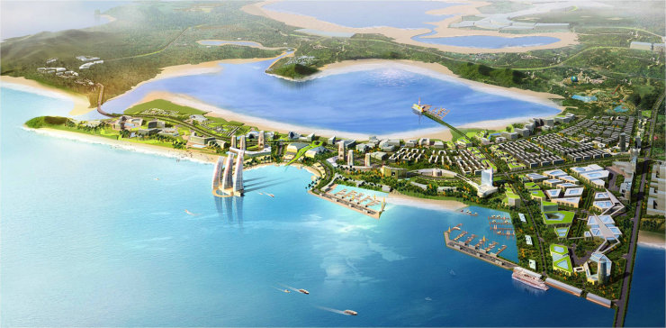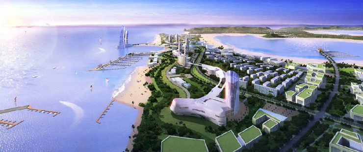 在热带海滩片区以及白鹭岛,有多种先进度假项目,包括海湾奢华酒店,艺术公园及南湾自然保护区。而在整个规划图的中心位置,安排的是艺术复合水城。那里有繁华的商业小镇,有着全国较大的私人博物馆群落,有可以容纳几万人同时进行会展的国际会议会展中心,有全中国较大的免税购物中心。
