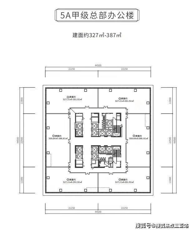 约187米高迎宾路首排地标,约4.4米标准层高,约13.5米全挑空无柱化大堂,16部鼎配电梯,建面约327-387㎡产品。