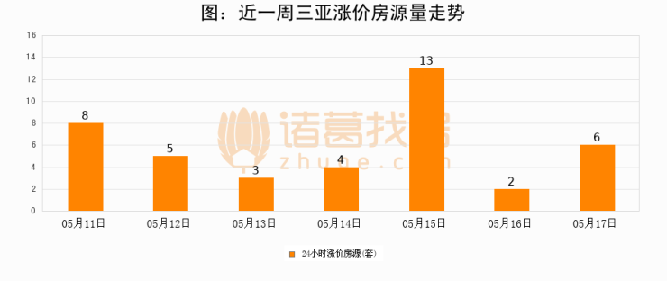 根据诸葛找房数据显示,三亚24小时涨价房源量为6套,较05月16日增加4套,环比上涨200%。与此同时,涨价房源占比小幅扩大,业主信心有所提升。