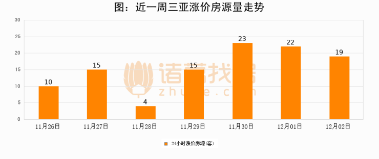 根据诸葛找房数据显示,三亚24小时涨价房源量为19套,较12月01日减少3套,环比下降13.6%。与此同时,涨价房源占比小幅回落,对于购房者来说是一个入市窗口期,购房者可抓住时机入市。