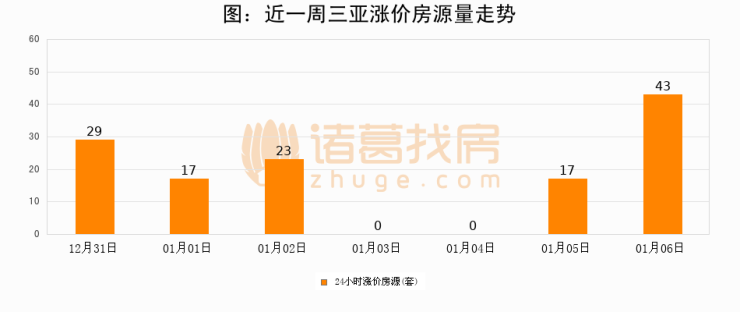 根据诸葛找房数据显示,三亚24小时涨价房源量为43套,较01月05日增加26套,环比上涨152.9%。与此同时,涨价房源占比小幅扩大,业主信心有所提升。