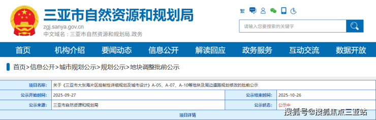 近日,三亚市自然资源和规划局发布了《三亚市大东海片区控制性详细规划及城市设计》A-05、A-07、A-10等地块及周边道路规划修改的批前公示。