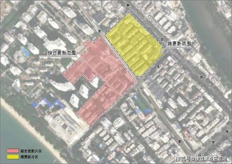 项目征收范围东至胜利路、南至友谊路、西至南部战区海军第二医院、北至海岸名都小区,涵盖粮储公司、面粉厂宿舍楼、海南省粮食转运站等综合更新片区,以及药材小区、医药小区等微更新区域。