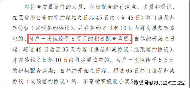 在规定期限内签约并腾空房屋的,还可拿8万元奖励。
