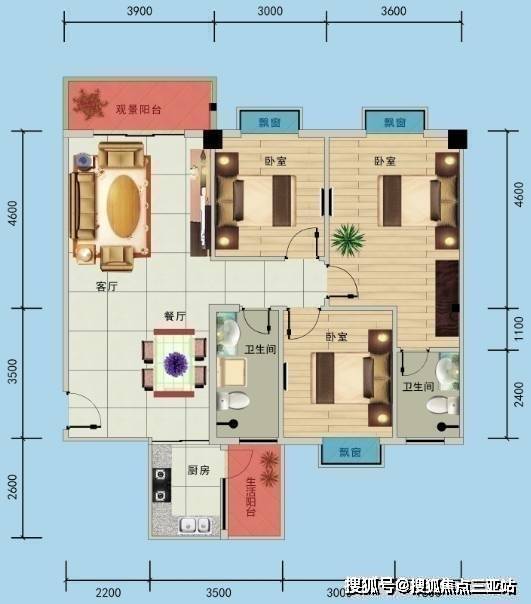 项目户型60-108㎡,一房到三房,户型多样,满足不同家庭住房需求。户型设计方正通透、宽敞舒适、宽景阳台、270°飘窗视野、使用空间更是灵动变换,为度假颐养首选之地。