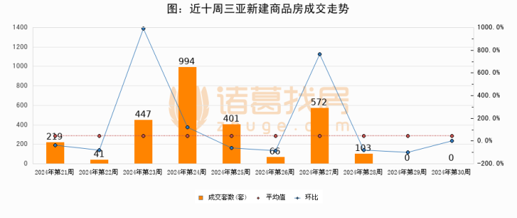 进入2024年第30周(07月22日-07月28日),三亚新建商品房成交0套,较上周持平