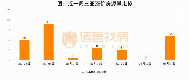 根据诸葛找房数据显示,三亚24小时涨价房源量为12套,较06月10日增加12套,环比上涨0%。与此同时,涨价房源占比小幅扩大,业主信心有所提升。
