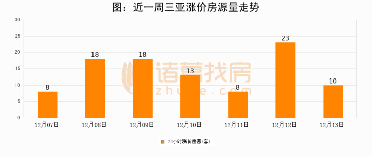 根据诸葛找房数据显示,三亚24小时涨价房源量为10套,较12月12日减少13套,环比下降56.5%。与此同时,涨价房源占比小幅回落,对于购房者来说是一个入市窗口期,购房者可抓住时机入市。