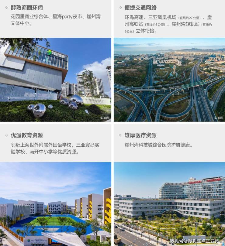 便捷交通网络:环岛高速、三亚凤凰机场(直线约27公里)、崖州高铁站(直线约5公里)、崖州湾轻轨站(直线约3公里)立体衔接。