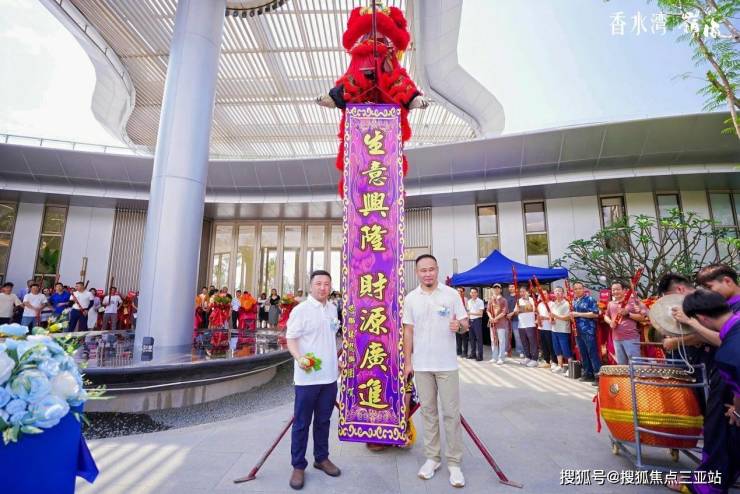 启动仪式后,新华联文旅常务副总裁兼海南新华联董事长于昕和海南新华联总经理古玉建为祥狮点睛,寓意着点睛启灵、醒狮献瑞,象征项目兴旺发达、鸿运当头。随后嘉宾们在工作人员的引导下,开启了项目品鉴之旅。滨海驿站以“海屿会客厅”为设计理念,270°环幕观海洽谈区将碧海蓝天无缝引入室内,光影与海浪的律动让人仿佛置身自然画卷之中。户外的观景平台与艺术化园林景观更是吸引了众多嘉宾驻足拍照,成为活动现场的网红打卡点。