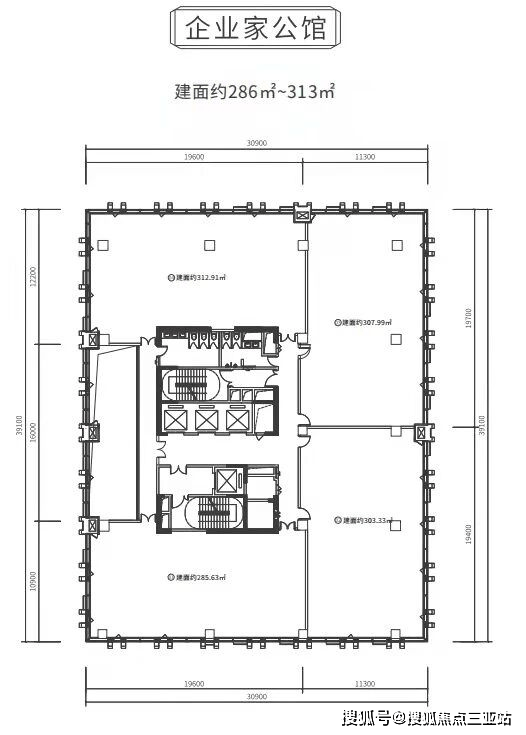4梯4户,建面约285-315㎡,以国际时尚与绿色生态理念打造奢阔品质商务生活空间。