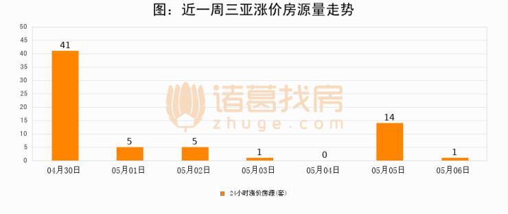 根据诸葛找房数据显示,三亚24小时涨价房源量为1套,较05月05日减少13套,环比下降92.9%。与此同时,涨价房源占比小幅回落,对于购房者来说是一个入市窗口期,购房者可抓住时机入市。