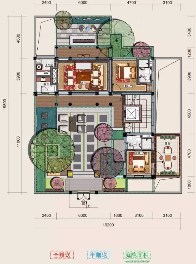 亚龙府合院现有三种户型,大合院706㎡/中合院217㎡/小合院160㎡(建筑面积),均享受大庭院与赠送空间。