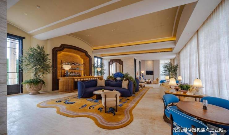 约9.5万㎡的园林为画布,巧妙融汇普罗旺斯的悠然与戛纳海岸的光影。摒弃传统热带度假区的直白表达,转而采用南法庄园经典的台地、拱门结构,同频尼斯的罗斯柴尔德庄园元素规划长约41米的蔚蓝序厅,让风、光与景自由流动。薰衣草紫、迷迭香银与橄榄绿,点缀于海棠湾的蔚蓝与椰绿之间,塑造出温和、高级且充满沉浸感的度假调性,实现了南法慵懒与三亚优雅的完美融合。