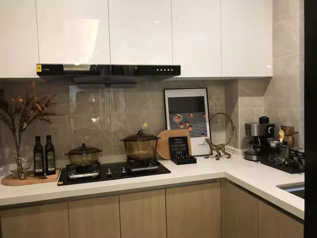 L型厨房将厨房空间最合理化的规划,看起来清爽整洁,还能让两个人在这里同时烹饪,将一日三餐变为生活中最有趣的部分。