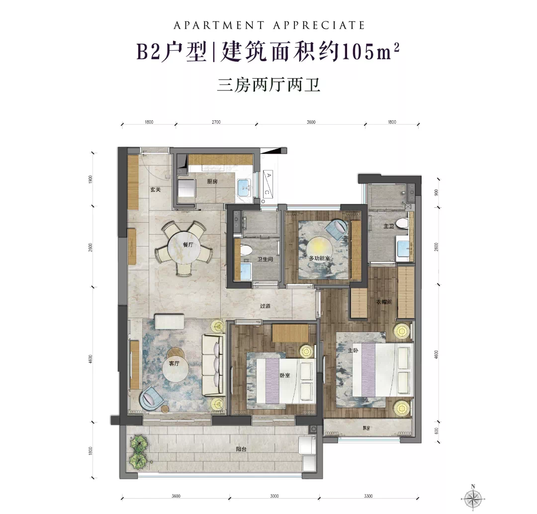 北辰府约105㎡三房两厅户型,给80后90后的你,一个不后悔的选择。