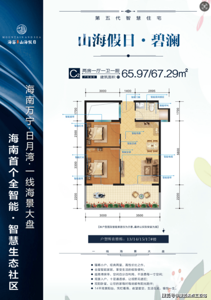 山海假日全屋智能家居,包括智能入户、智能家电、智能场景,智能感应。