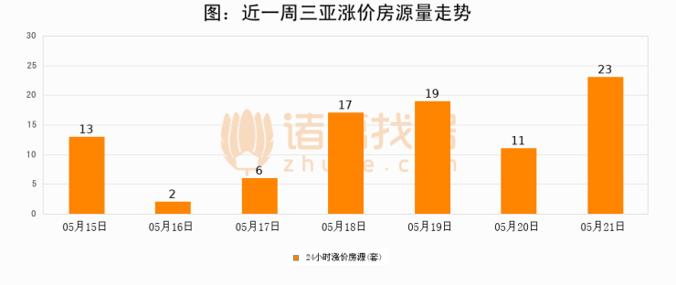 根据诸葛找房数据显示,三亚24小时涨价房源量为23套,较05月20日增加12套,环比上涨109.1%。与此同时,涨价房源占比小幅扩大,业主信心有所提升。