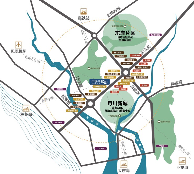 中铁·子悦台,是中铁置业在海南打造的排名前列城市中心高端综合体,坐落于三亚迎宾路南端,项目距离大东海5.2公里,亚龙湾15公里,三亚凤凰国际机场10.8公里,高铁站3.1公里。