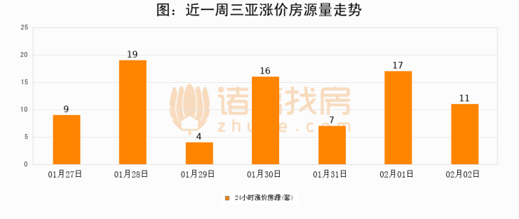 根据诸葛找房数据显示,三亚24小时涨价房源量为11套,较02月01日减少6套,环比下降35.3%。与此同时,涨价房源占比小幅回落,对于购房者来说是一个入市窗口期,购房者可抓住时机入市。