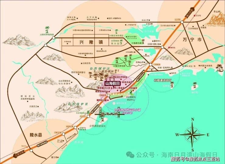 🏡海容·山海假日(万宁山海假日)山海假日在位于北纬18.15°,世界黄金宜居带,万宁兴隆的日月湾景区内🏡 【海南岛一线海景大盘】山海假日位于日月湾景区内,坐卧70米半山之上;前拥日月湾,约1000米直达海边。