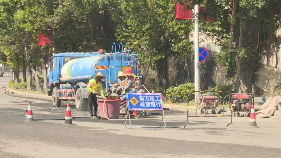 目前正在处于灌浆阶段,主要作用是稳定路基,达到路面不再出现龟裂,产生安全隐患,预计本月内铺完沥青。人行道有一部分进行改造,主要把人行道的路沿石、还有人行道桩全部铺过,因为有破损,所以把它换新的,把它改造。