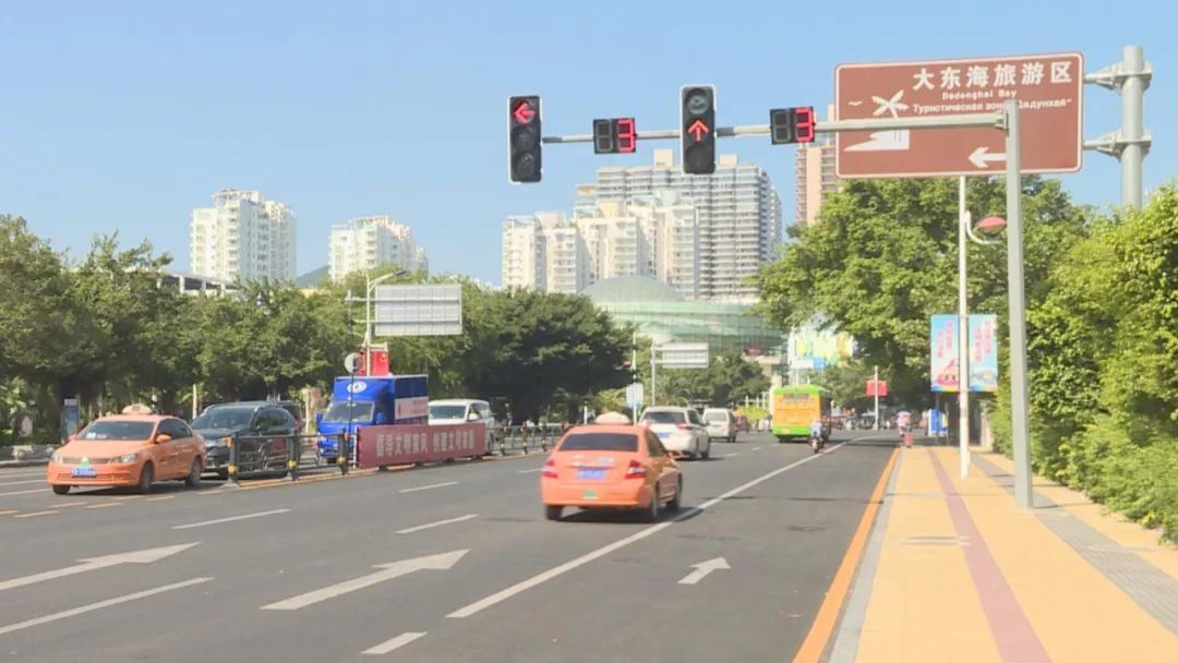道路平整一新,护栏、交通标志、路面标线设施齐全,经过一个月路面升级改造,现在榆亚路大东海路段道路拥堵的情况已经有了明显改善。