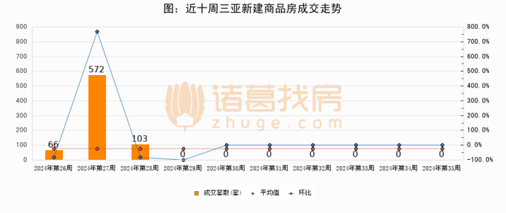 进入2024年第35周(08月26日-09月01日),三亚新建商品房成交0套,较上周持平