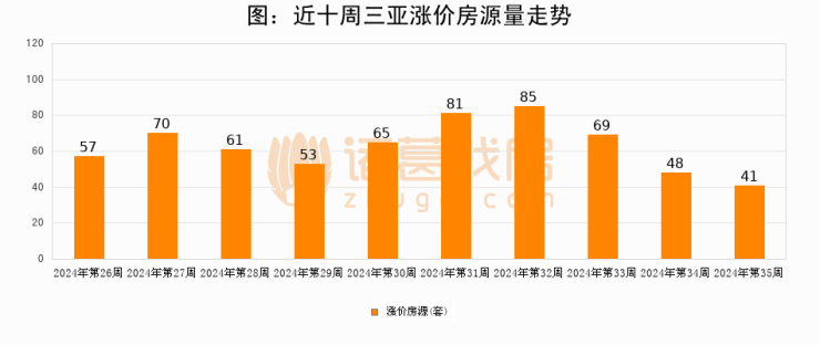 从调价房源来看,第35周三亚涨价房源41套,较上周下降14.6%。与此同时,35周涨价房源占比提升1.72个百分点,业主信心持续恢复。
