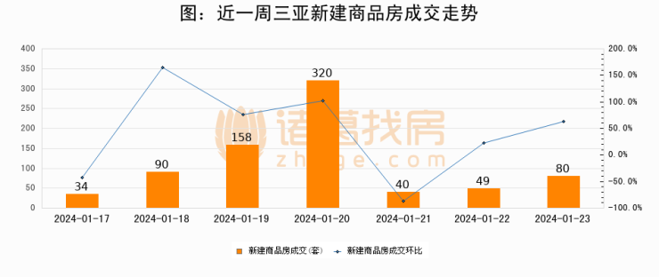 【三亚成交日报】01月23日新房成交80套;涨价房源21套