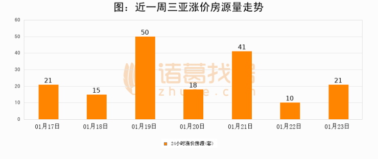 根据诸葛找房数据显示,三亚24小时涨价房源量为21套,较01月22日增加11套,环比上涨110%。与此同时,涨价房源占比小幅扩大,业主信心有所提升。