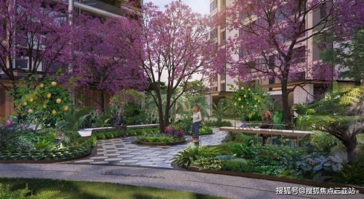 区别于多数本地住宅外来文化风格的冰冷感,绿城希望结合万宁的千年文脉、城市名片与美学园林,通过庭院礼序与热带风情的融情于景,以期呈现“于自然生态中艺术行望,于隐逸超然中不离繁华”的风雅,不惜成本,严控40%绿地率,坚持用多数土地来造景,最终实现了“一轴·一街·一环·六大场景”的园林景观。
