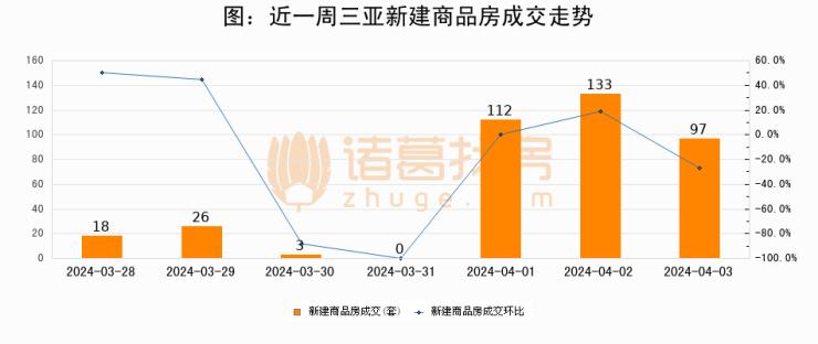 【三亚成交日报】04月03日新房成交97套;涨价房源9套