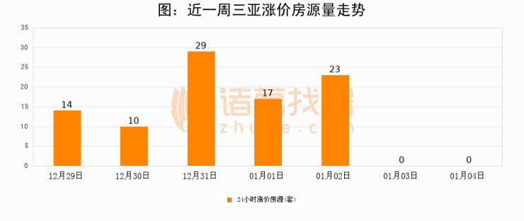 根据诸葛找房数据显示,三亚24小时涨价房源量为0套,较01月03日持平。